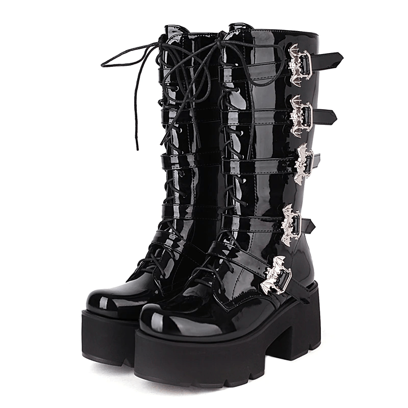 Break free from the confines of “normal” and take a step into the darkness. When you’re walking the eternal path of darkness, boring, preppy shoes just stick out like a sore thumb. You need classic, somber shoes that capture your dark vibe. At Gothic Skin we’ve got a range of all-black platform heels, chunky boots, knee-high boots, and wedges that speak to your black soul. So go ahead and complete their casual and special all-black-everything looks and goth it up from head to toe with any of our decadently dark, luxurious shoes.