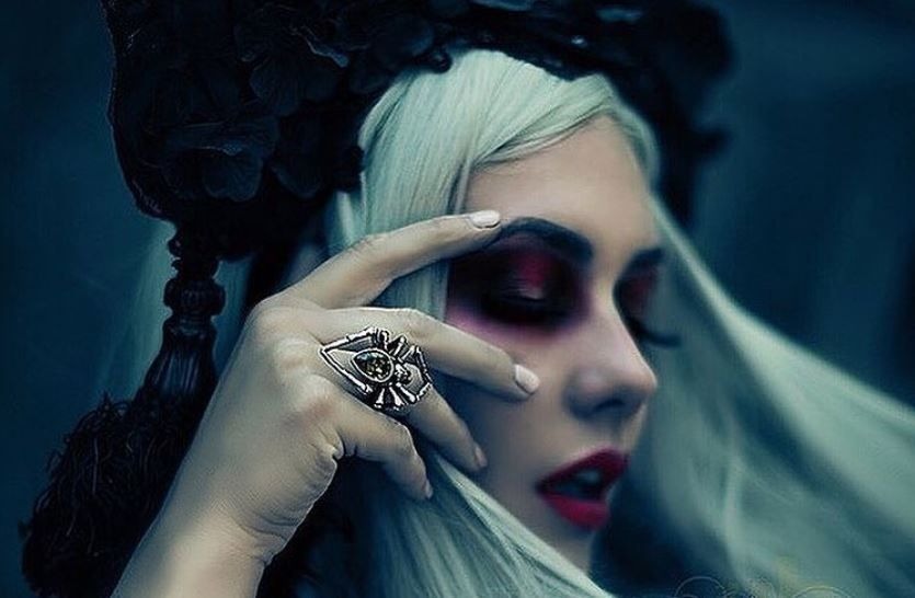A gorgeously gothic polished pewter ring - a detailed spider design with a large emerald green Swarovski crystal body.