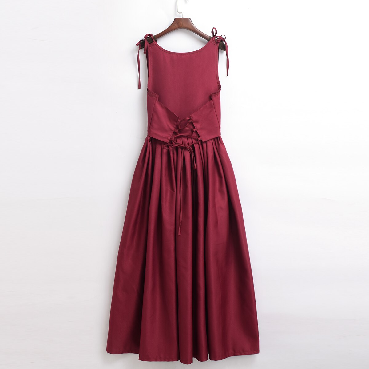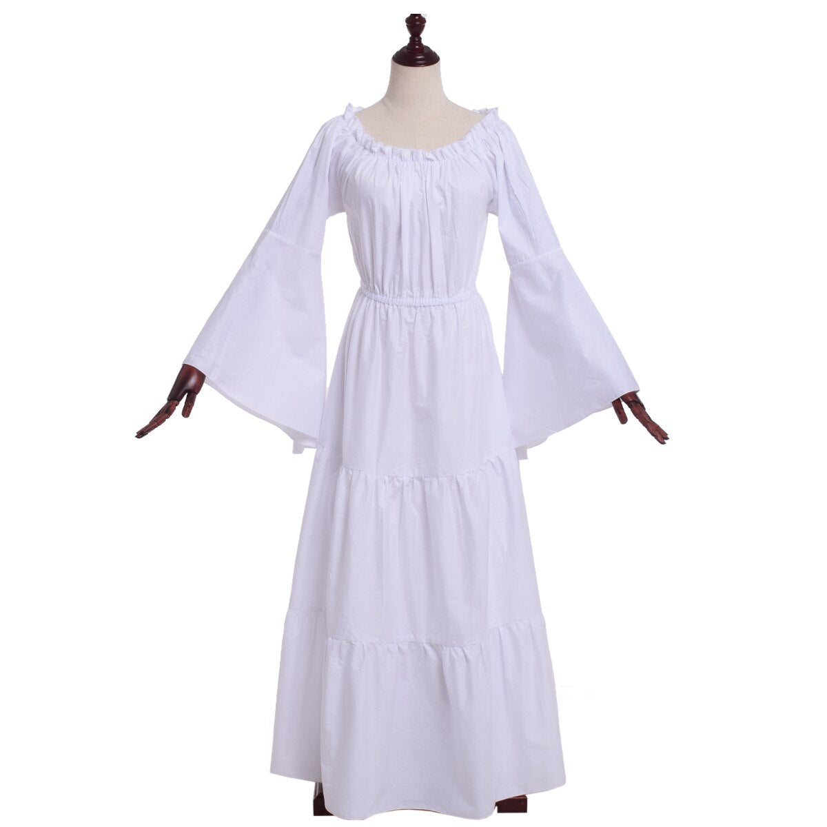 A beautiful medieval peasant-style dress, with an embroidered and corseted waist to cinch in your middle section.