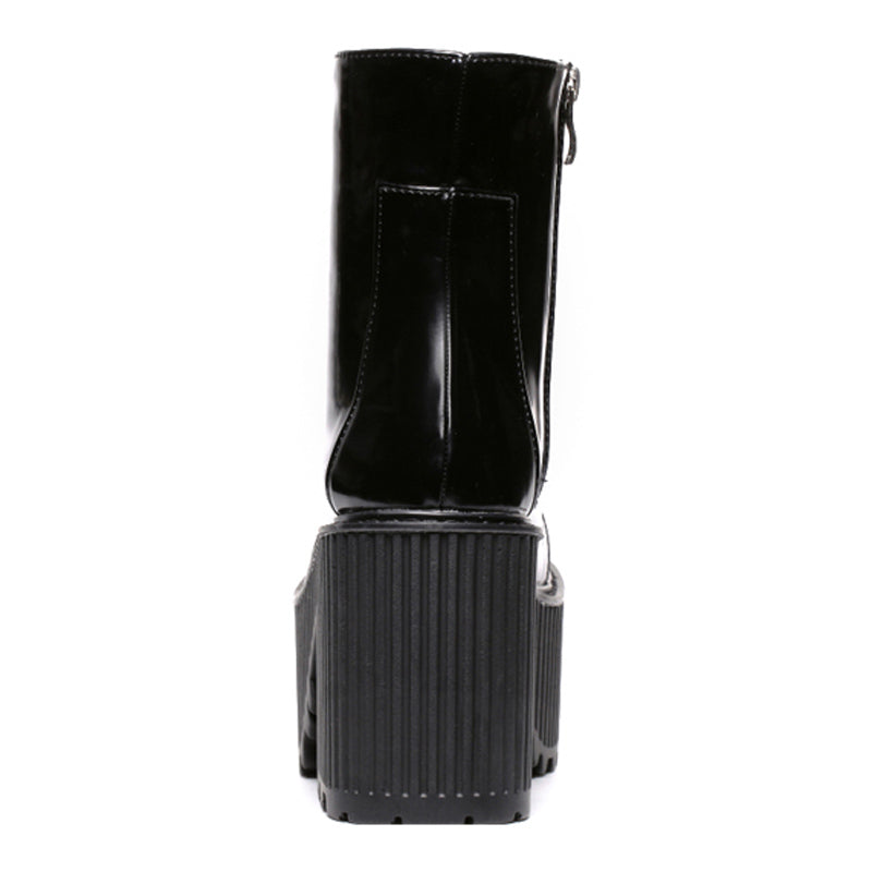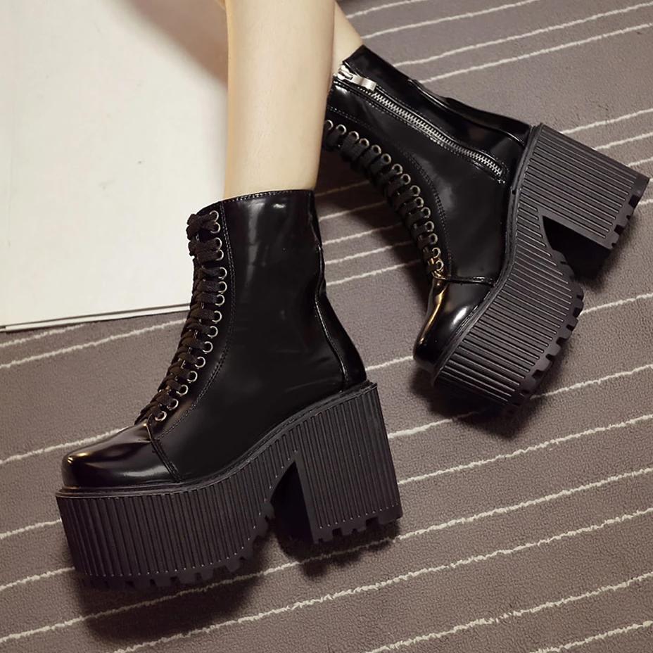 The coolest Patent faux leather lace-up chunky platform boots with a huge platform corrugated sole!