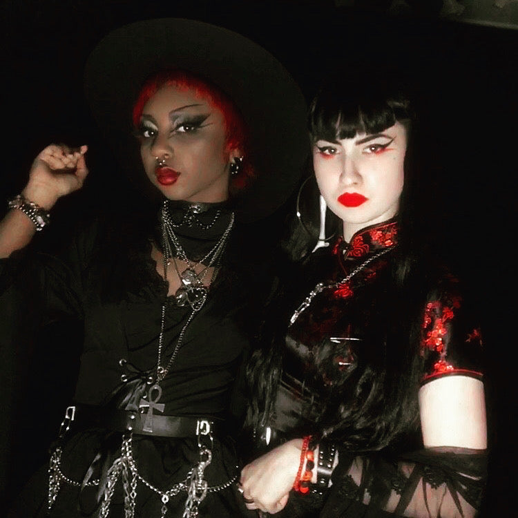 A traditional Chinese Cheongsam/Qipao Mandarin traditional style satin dress with a dark floral blossom design. A flattering and stylish piece with a sensual satin finish.