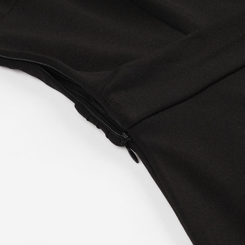 A sweetheart bustier chest line with a cleavage gap streamlines into a flattering A-line swing mini skirt.