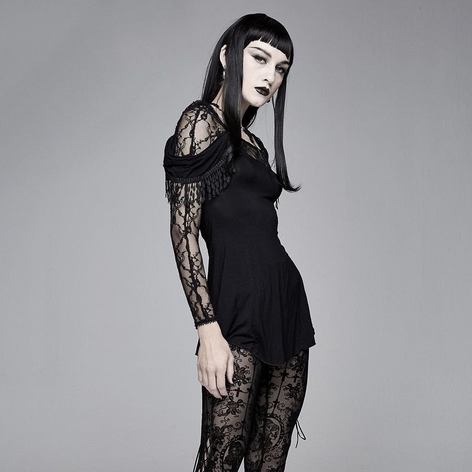 Draped off the shoulder sections are edged with gothic tassels for sensual period drama vibes..