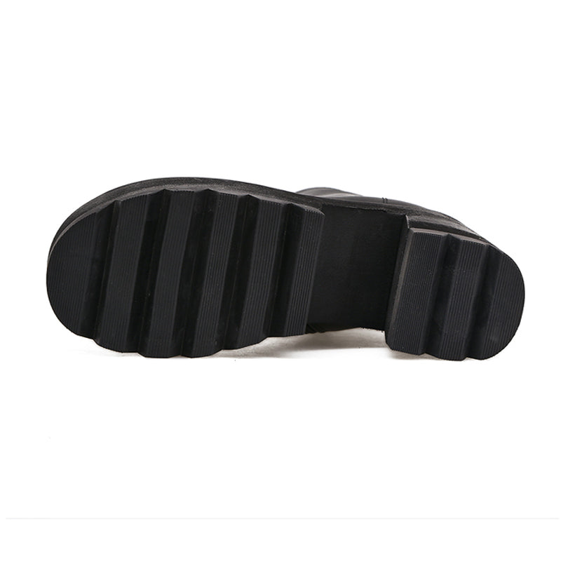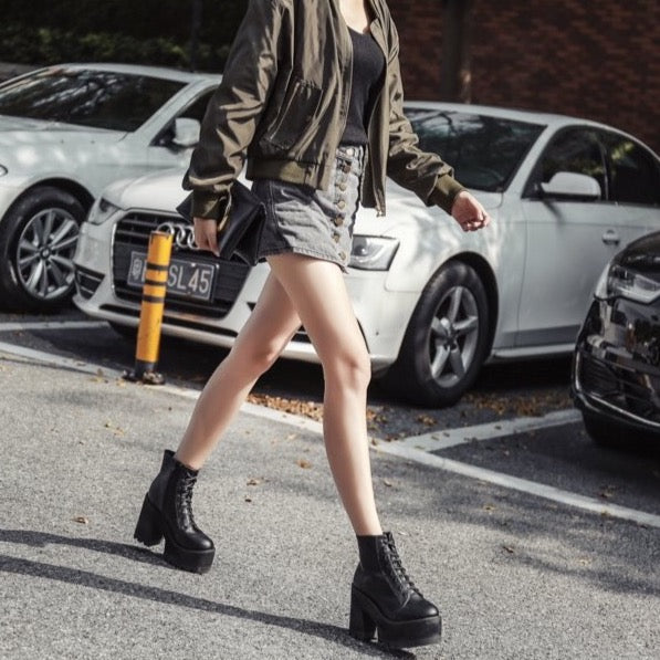 A victorian gothic vibe merges with big platform corrugated soles to create the perfect goth/punk boot!