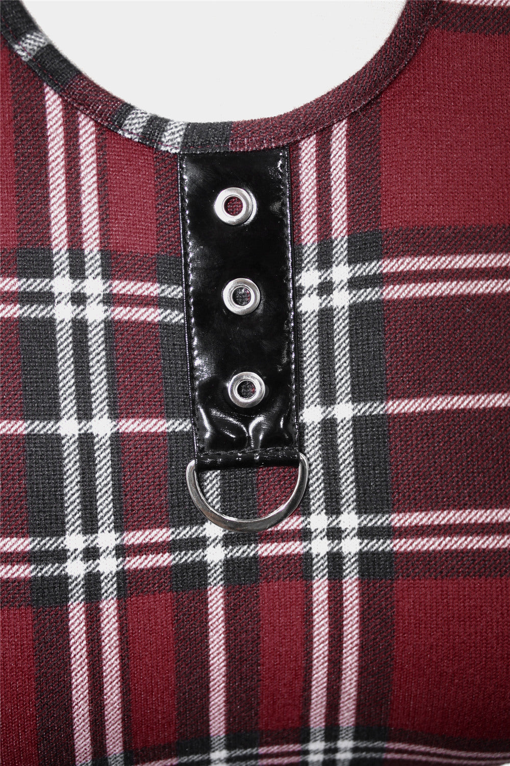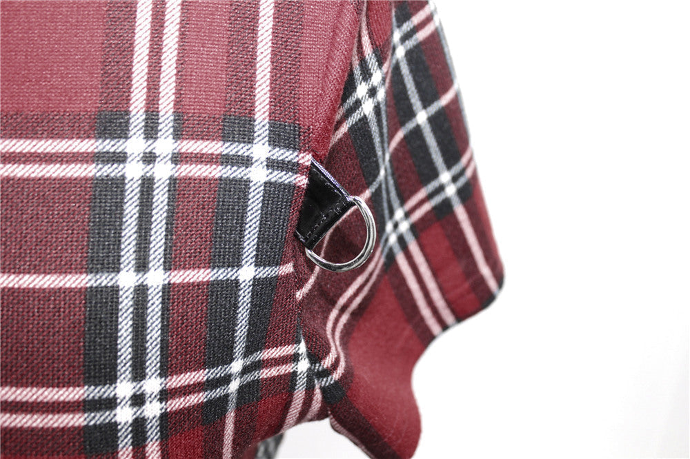 This super flattering A-line mini dress has a tartan pattern fabric and built-in belt with detachable chain accessory so you can switch it up for two different looks.