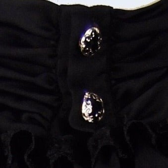 Classic horror style, with the high neck and ruffled collar and cuffs as made popular in so many movies. Beautiful buttons provide beautiful extra design details.
