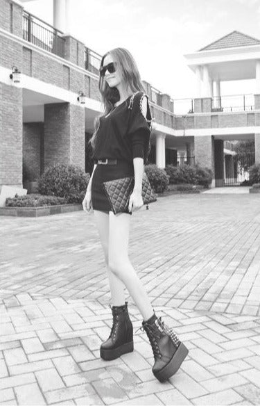 The fiercest high tops you've ever seen - thick chunky platform soles and double buckled straps over a lace-up front and glam spikes and gems on the back heel.