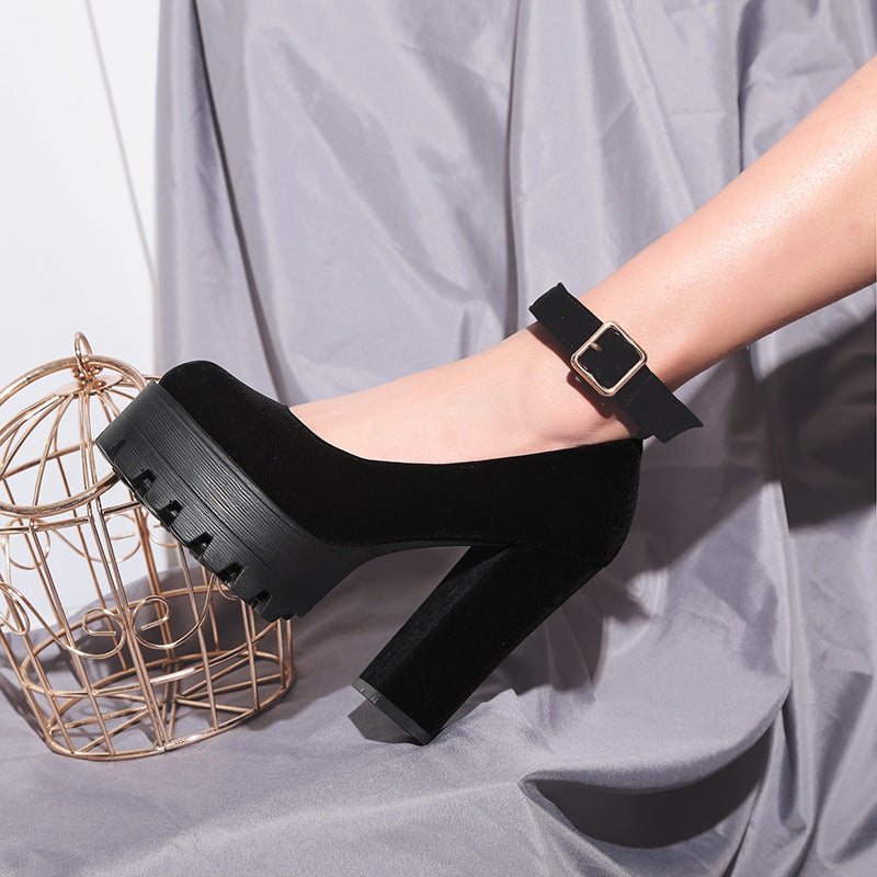 Plush velvety platform shoes with a corrugated chunky stomping sole!